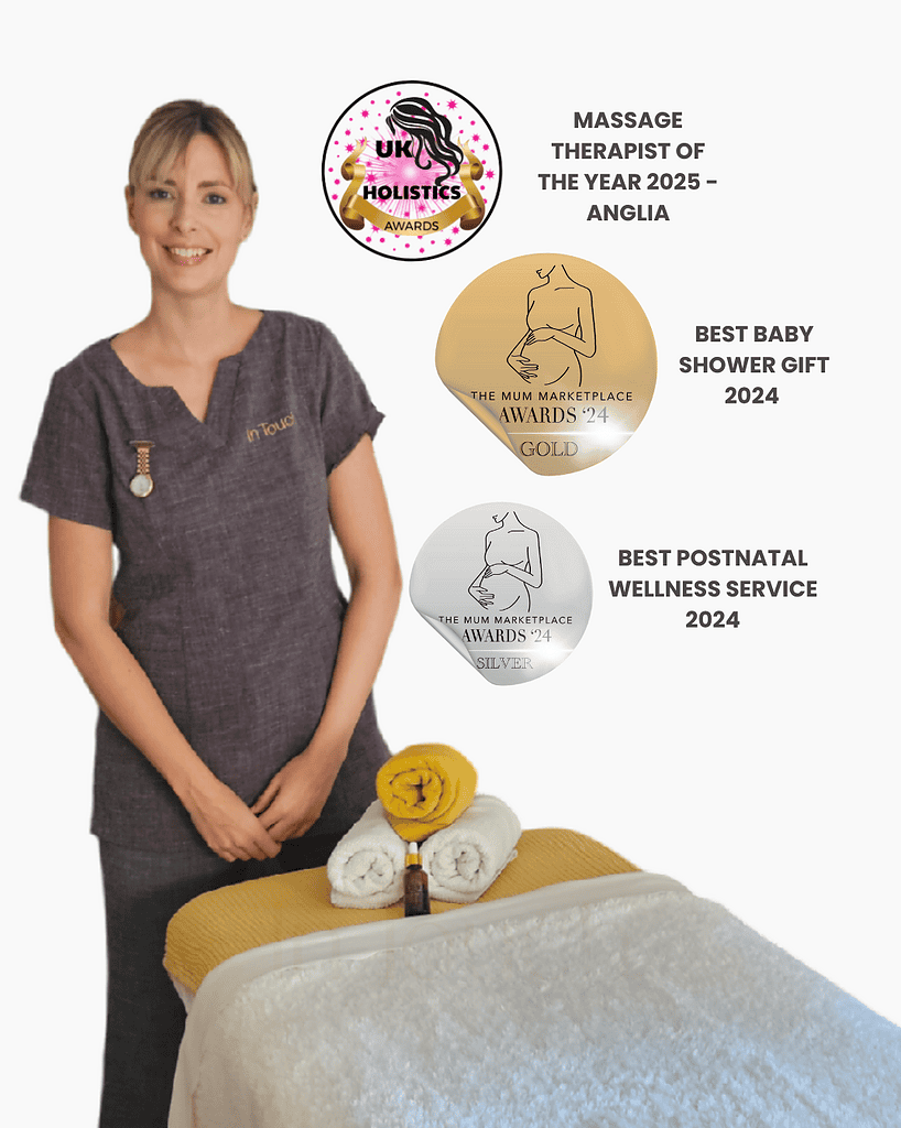Thanks so much for visiting my website! I’m on a mission to make self-care realistic, accessible, and deeply restorative for mums and women at every stage of life. Ever since I was little, I’ve been fascinated by pregnancy, babies, and child development, which led me to a career in midwifery and then health visiting. Since I started my midwifery training in 2005, I’ve been lucky enough to support hundreds of babies being born and even more families as they navigate their journey through the early years. Alongside running In Touch, I still work part-time for the NHS, in a job that I love and care deeply about. My professional knowledge means that I really understand the physiology of pregnant and postnatal women, and the importance of maternal wellbeing. Nurture is in my nature, and I truly believe in the power of massage for overall well-being.